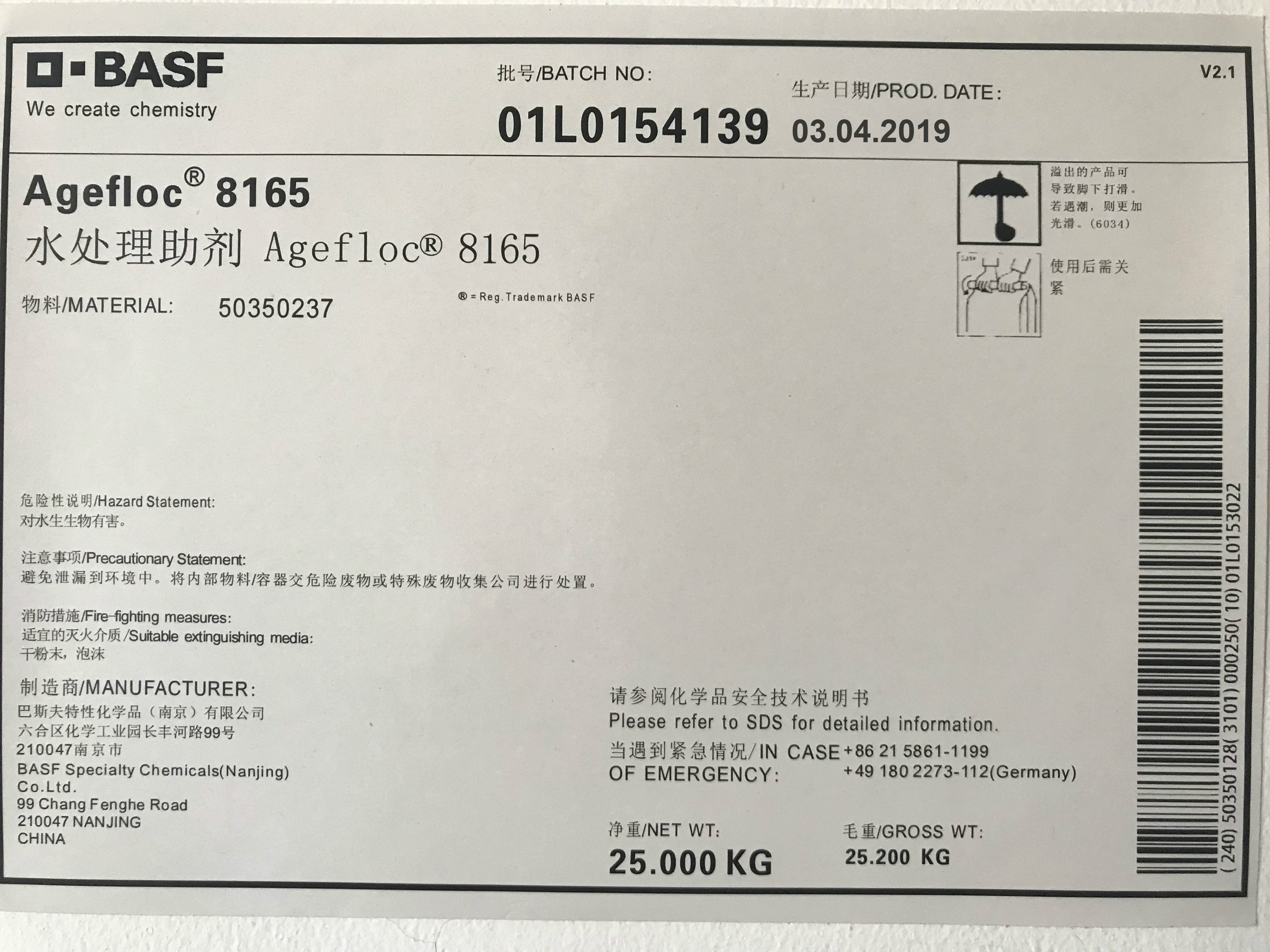 汽巴水處理助劑 Agefloc® 8165實(shí)物展示服務(wù)熱線:021-31323000